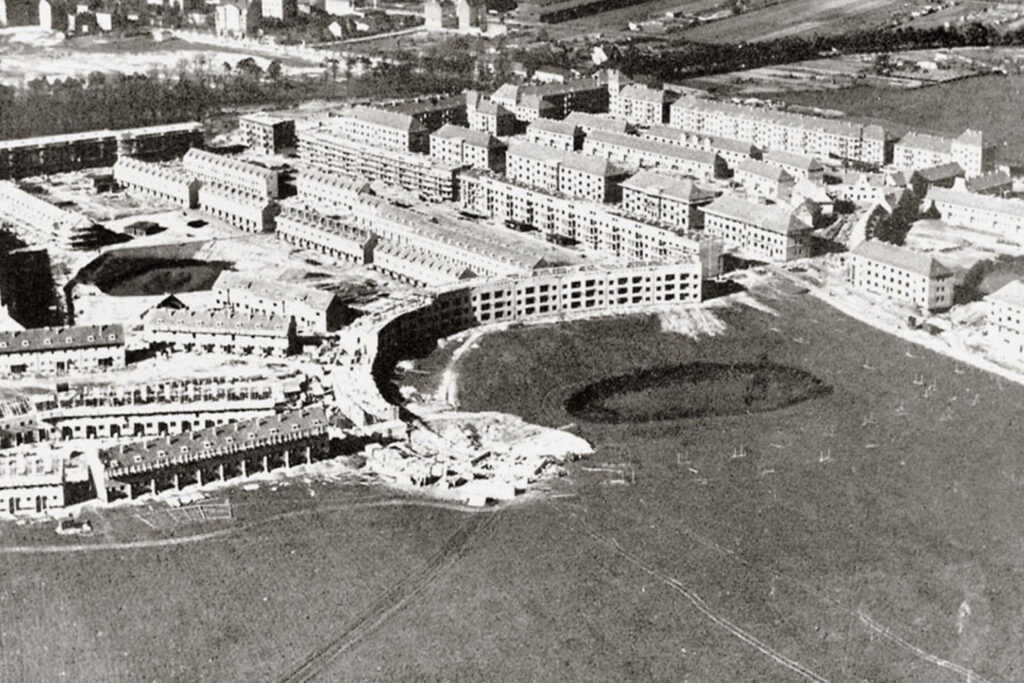 Of these six outstanding ensembles, the Hufeisensiedlung is not only the largest, but also the most famous and the most challenging in terms of monument preservation. Even at the time of its construction, the large housing estate in Neukölln-Britz functioned as a divided "showplace". Two political camps and their respective sponsored housing associations, GEHAG and DEGEWO, competed here. Under the direction of Bruno Taut, the chief architect appointed by the GEHAG housing association, new forms of urban development were tested in the Hufeisensiedlung. They scaled up the qualities of a garden city with simple terraced houses and lots of greenery and combined them with an urban multi-storey apartment building that could be built in series to save costs.